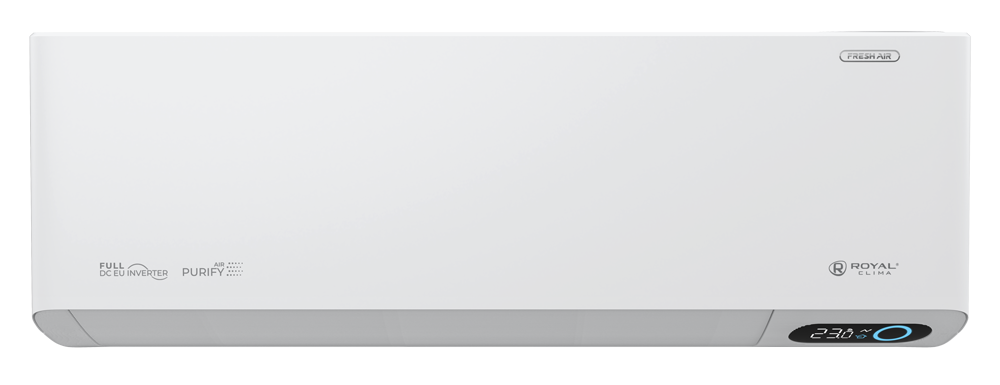 Кондиционеры ROYAL FRESH STANDARD c низким уровнем шума внутреннего блока от 19,5 дБ(А), оснащены интеллектуальным датчиками освещенности, регулирующие подсветку дисплея. Высокоинформативный модуль индикации отображает режимы работы кондиционера, меняя цвет.